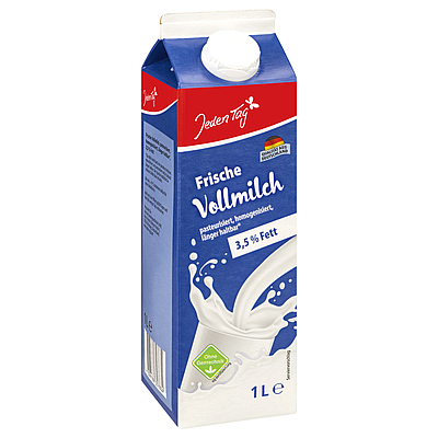 Jeden Tag frische Vollmilch pasteurisiert, homogenisiert, länger haltbar* 3,5% Fett 1L