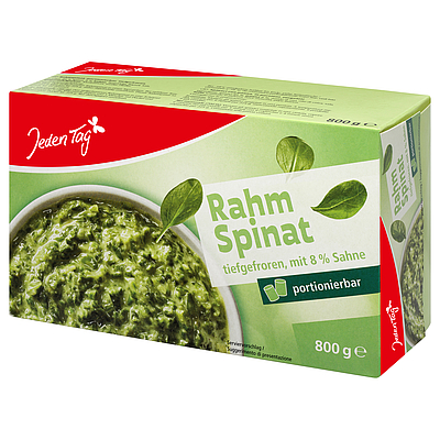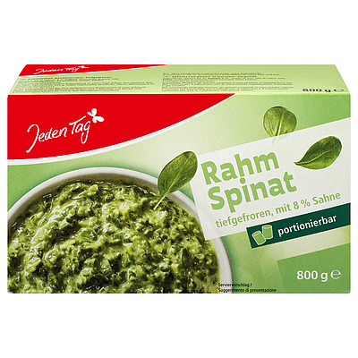 - 84% Spinat, 8% SAHNE, Reisstärke, Rapsöl, LAKTOSE, MILCHEIWEIß, MAGERMILCHPULVER, Zucker, Muskatnuss, weißer Pfeffer