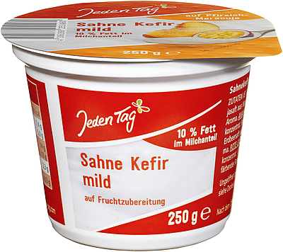 - PFIRSICH-MARACUJA: SAHNEKEFIR mild, Zucker, 8 % Pfirsiche, 1,3 % Maracujasaft aus Maracujasaftkonzentrat, 0,7 % Pfirsichsaft aus Pfirsichsaftkonzentrat, Stärke, natürliches Aroma.