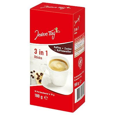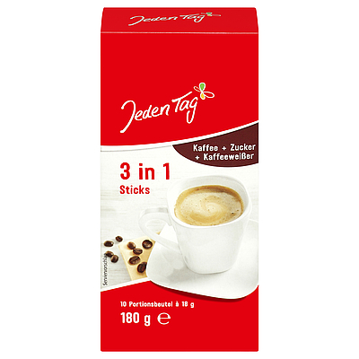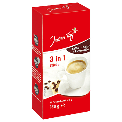 Jeden Tag 3 in 1 Sticks, Coffee, Sugar and Coffeecreamer